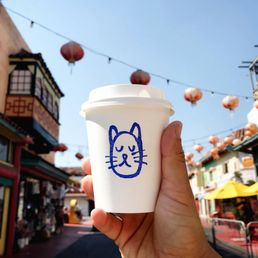 Thank You Coffee is a cute little hole in the wall! It's located in beautiful Chinatown, a great spot to walk around after grabbing your cup or Joe - or matcha. Cute little interior with great quick staff. They also sell pens and paper if you need that stuff. The matcha was really delicious, not too sweet and not too bitter. There's a little parking lot beside the location with picnic benches to sit and catch up with friends. Overall great experience and amazing drink. That little cat logo is so cute